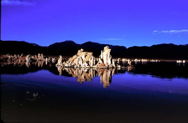 Virtually all of my images of Mono Lake are on 35 mm color transparency film (Fugichrome Velvia (iso 50) and Kodak E100VS (iso 100)). As a consequence, this page is "in process" since each image has to be scanned from the original transparency. Most images were created with my Nikon N80 35mm SLR camera and a Nikkor 28-105 mm (macro) zoom lens.